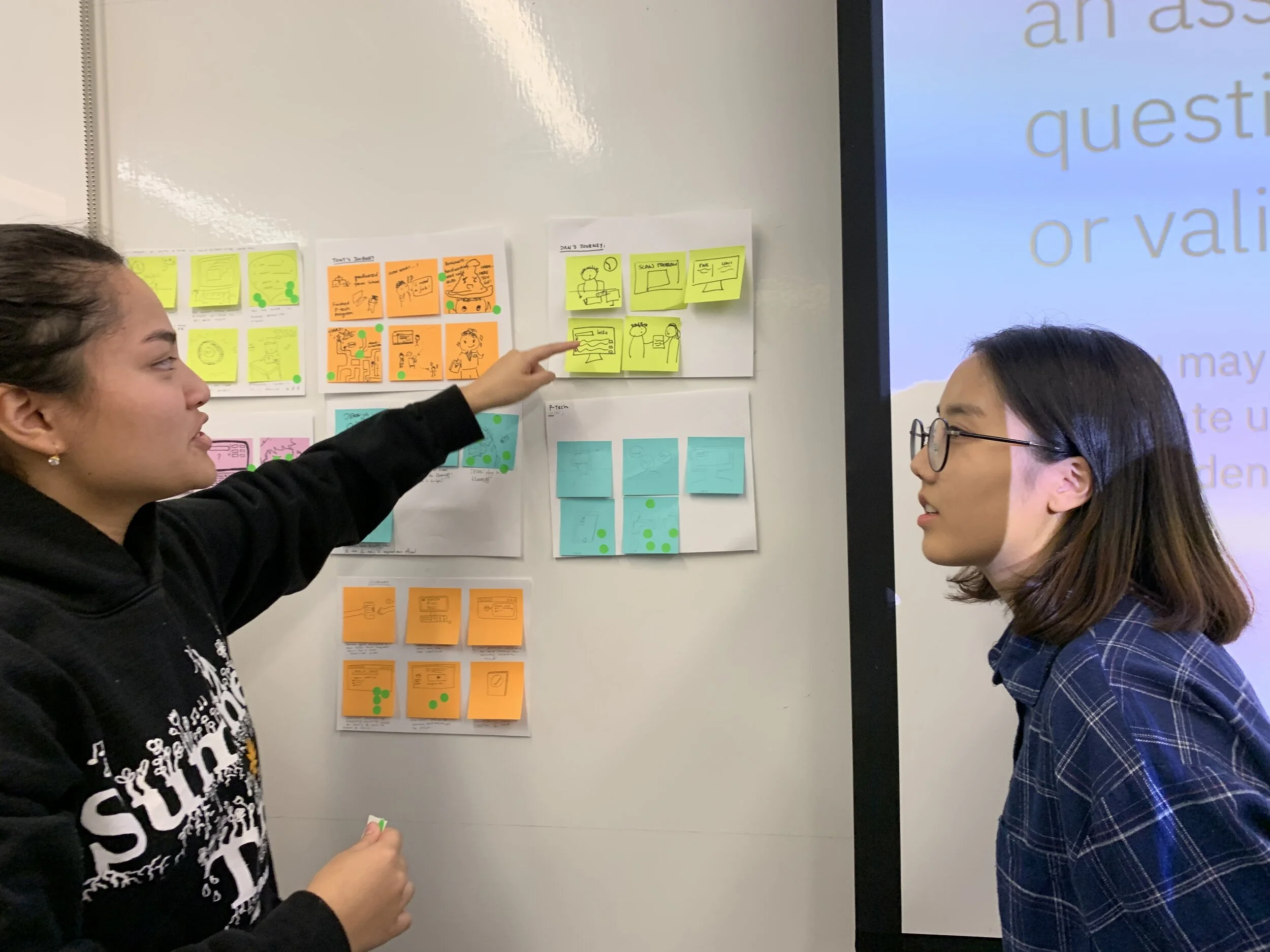 We split into pairs of 2-3 for the core user groups, and created discussion guide including interview and practiced. My partner, Doris and I interviewed P-tech team with our discussion guide.